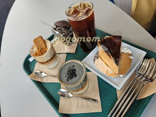 저희가 주문한 메뉴입니다. 시그니처메뉴였던 테일러버튼, 흑임자크림라떼, 비스코프크림라테. 아이스아메리카노, 그리고 황치즈케이크. 저는 테일러버튼을 먹었는데 수제아이스크림이라서 그런지 처음 먹어보는 맛이었습니다. 맛은 있었지만 좀 달고 텁텁한 느낌이 남아서 시그니처메뉴를 시켰던 세명은 아메리카노를 추가로 더 마셨습니다.
