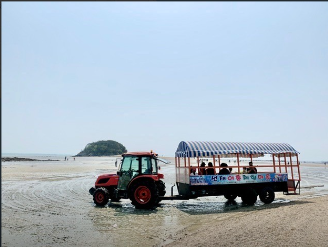 여기도 선감어촌마을처럼 트랙터를 타고 갯벌 깊숙이 들어가서 체험을 하게 됩니다.