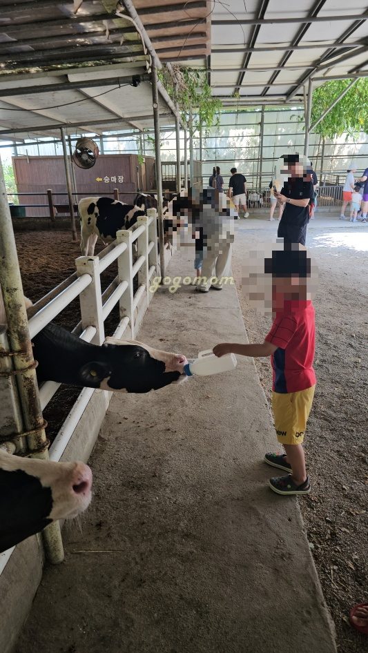 직원분이 오셔서 소 더우니까 선풍기도 틀어주고, 젖 짜기 준비로 물로 씻어주고 닦아주기도 합니다. 방법도 설명해 주십니다.