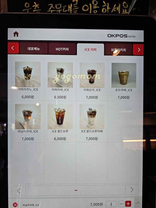 시그니처 메뉴와 많이 시키는 커피종류를 찍어봤습니다.